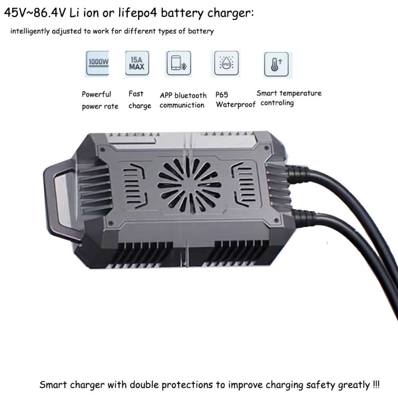 3) Output voltage can not be adjusted,client should select different voltage in according to your battery series ( for example : 13S Li ion Battery ,Charge voltage should be 13*4.2V=54.6V and, Lifepo4 Charge voltage will be 3.65*Cell’s Series ,take 12S Lifepo4 Battery for example ,the charger voltage will be 12*3.65=43.8V,please know it kindly in advance .