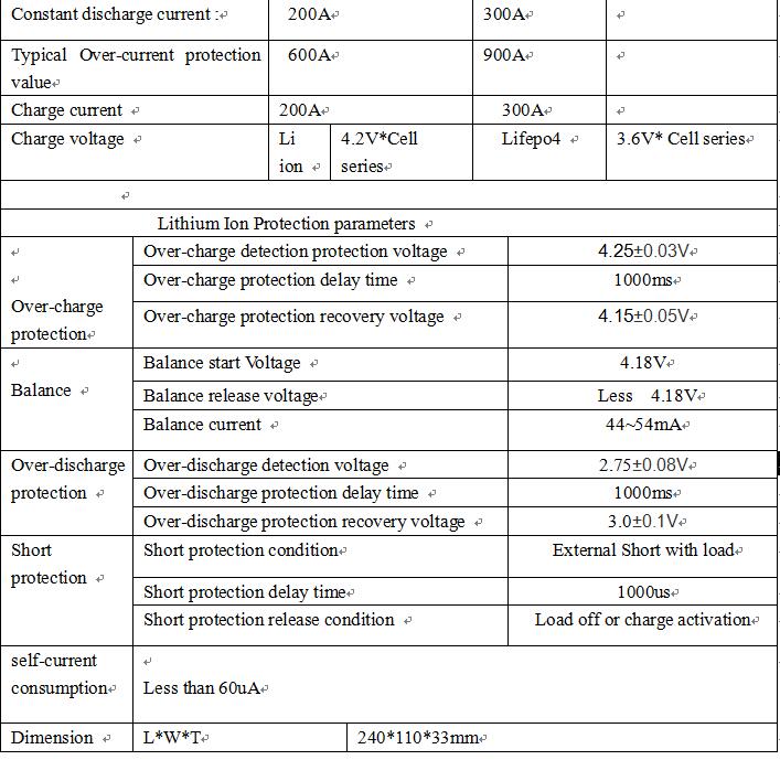 Application :this BMS was produced specially for large current application purpose , this model can be made for 3S ~24S li ion or lithium ion battery with 200A or 300A constant discharge current at stable working performance .
