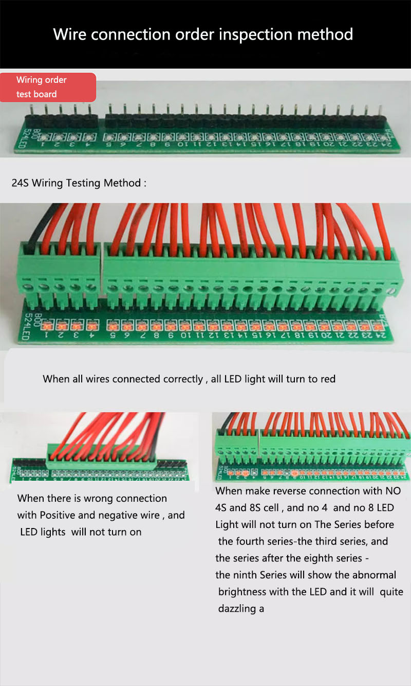 3) This module is not a complete product, and customers need to wire it according to the requirements before it can be used normally. Customers must connect it correctly to the battery after receiving the goods. This product has been tested normally when it is shipped. Any human error or carelessness can cause accidents such as battery damage, balance module damage, battery discharge will be out of control, and caused fire accidents. Therefore, customers must visually monitor the connection and testing process on site to prevent accidents such as circuit short circuits, overheating, and overvoltage. Our company is not responsible for safety accidents caused by incorrect use,please understand it kindly