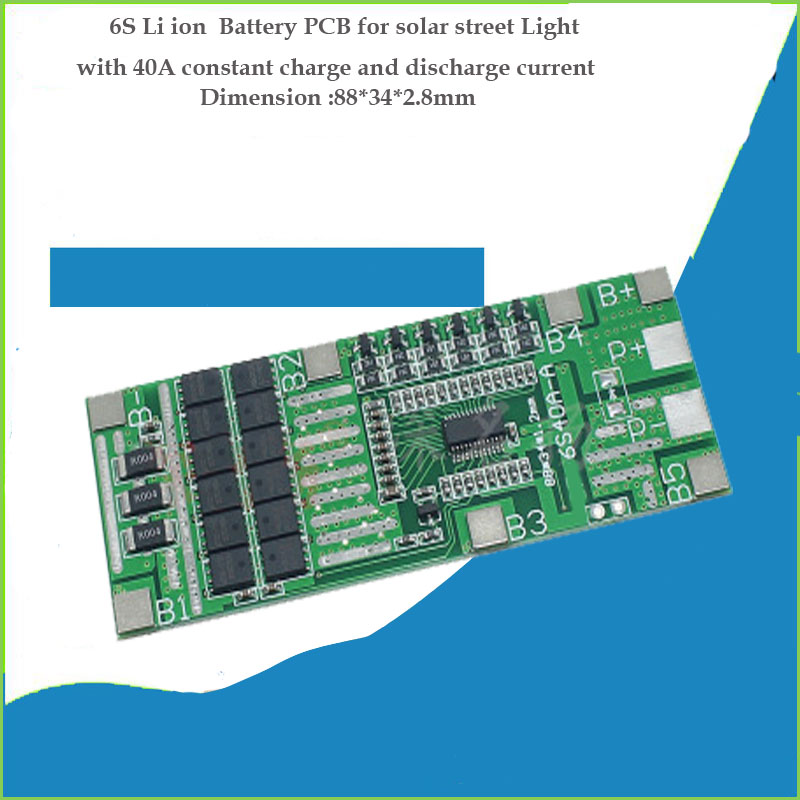 These Items can be widely applied on solar street light field ,also in some electric tool field with low power rate .usually for less than 7S battery ,with less than 25A constant discharge current , this BMS feaures on some additional protection such as -disconnection protection ,with heating function when meets low temperature working environment , water-proof application etc ,our PCB product works well and maturelly after few years market application test . it will offer a more reliable and safe performance to our customers .